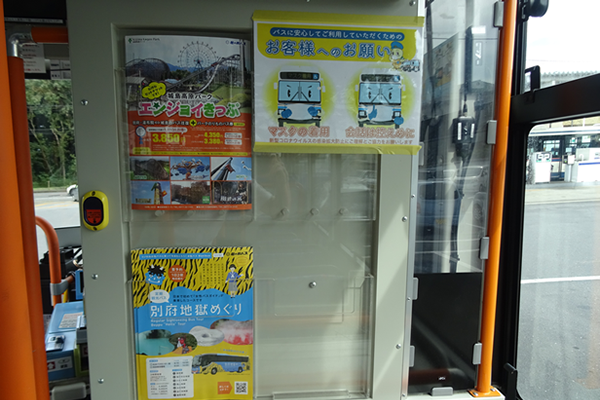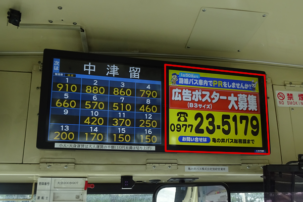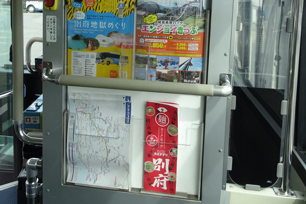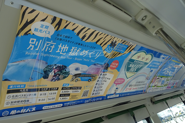 亀の井バスの路線バスは別府市内、由布市内を毎日運行しております。毎日のバス利用者のみならず観光客の方々へのPRも可能です。